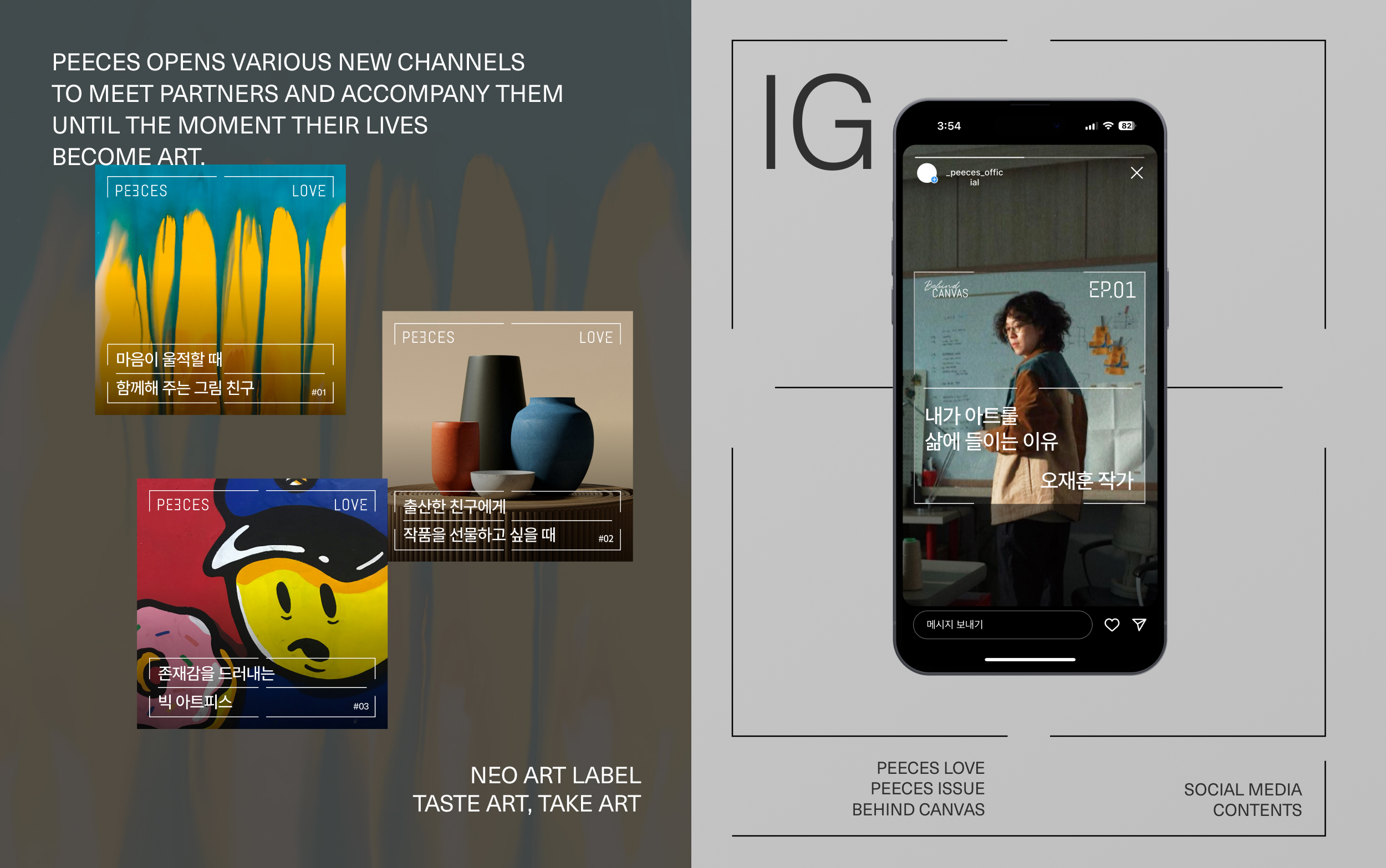 최근 다양한 기업과 브랜드가 비지니스 가치를 높이기 위해 스토리텔링과 아트를 활용하곤 합니다. 엔터테인먼트업계도 마찬가지로 여러 전시와 공간 사업 등을 통해 대중에게 메시지를 전하고 있죠. 그러나 엔터테인먼트 회사가 순수 작가 매니지먼트에 나선 건 피시스가 처음입니다. 피시스는 빠르게 성장하고 있는 국내 미술 시장에 K-팝 사업 모델을 도입해 작가 매니지먼트 사업을 펼칠 계획과 동시에 향후 브랜드 협업이나 굿즈 사업, 작가 간 협업 프로젝트 등을 통해 미술계에서 존재감을 확장시킬 것입니다.
